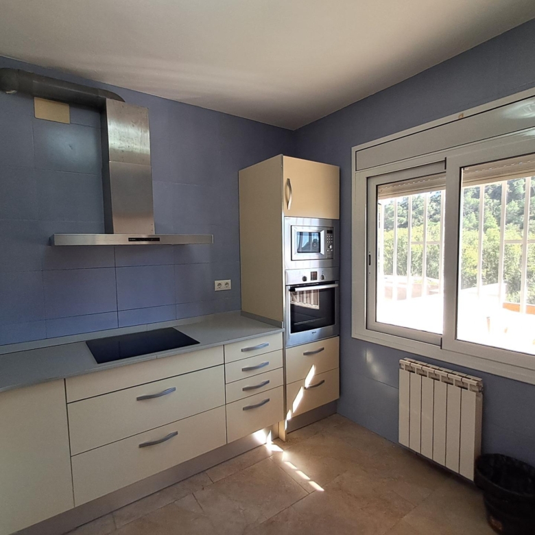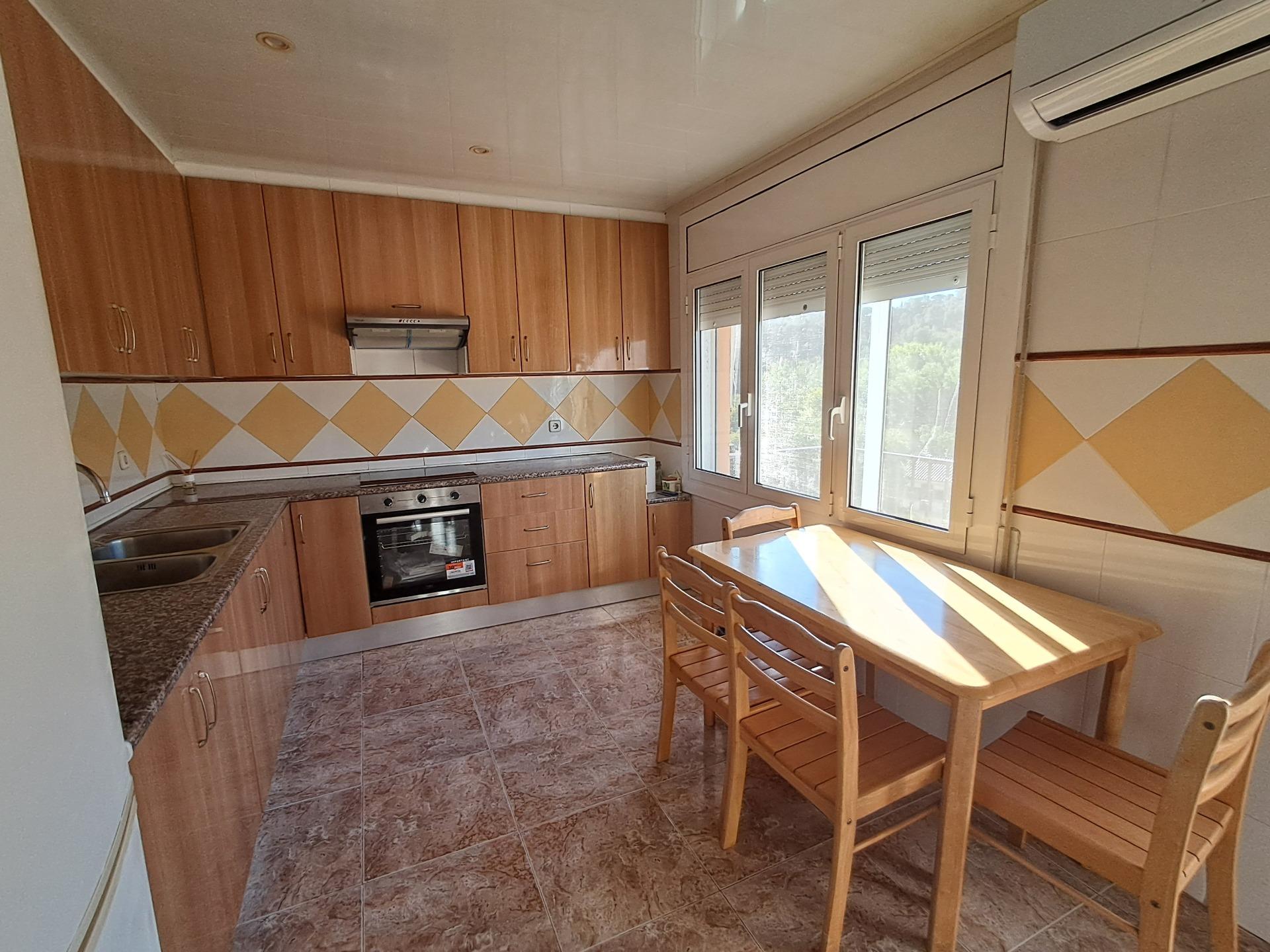Cocina y comedor con fuego a tierra y salida directa a una espectacular terraza de 60 m², orientada al sur.