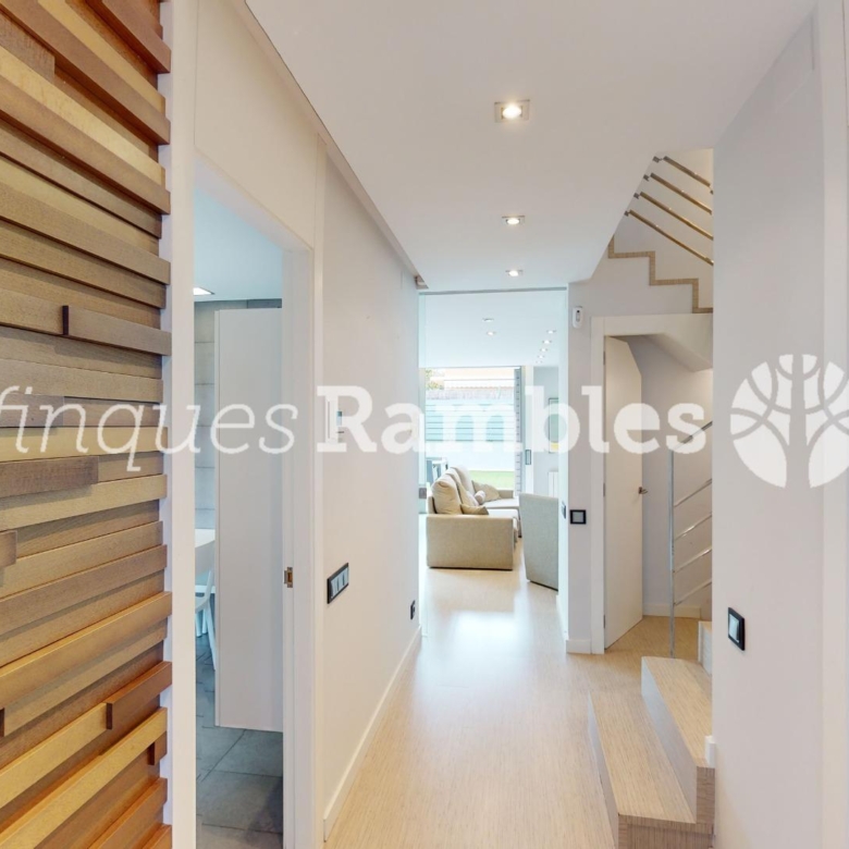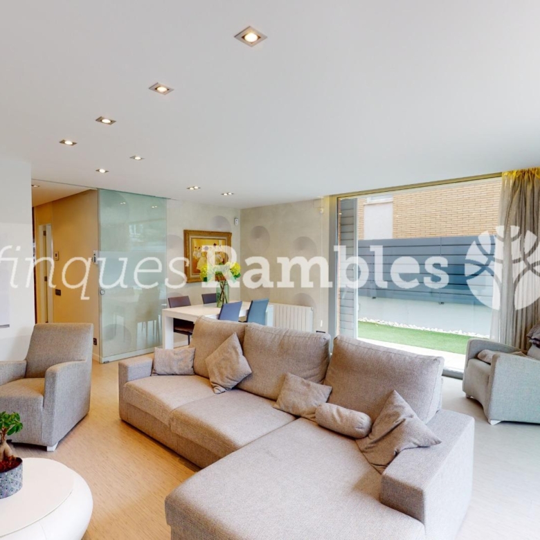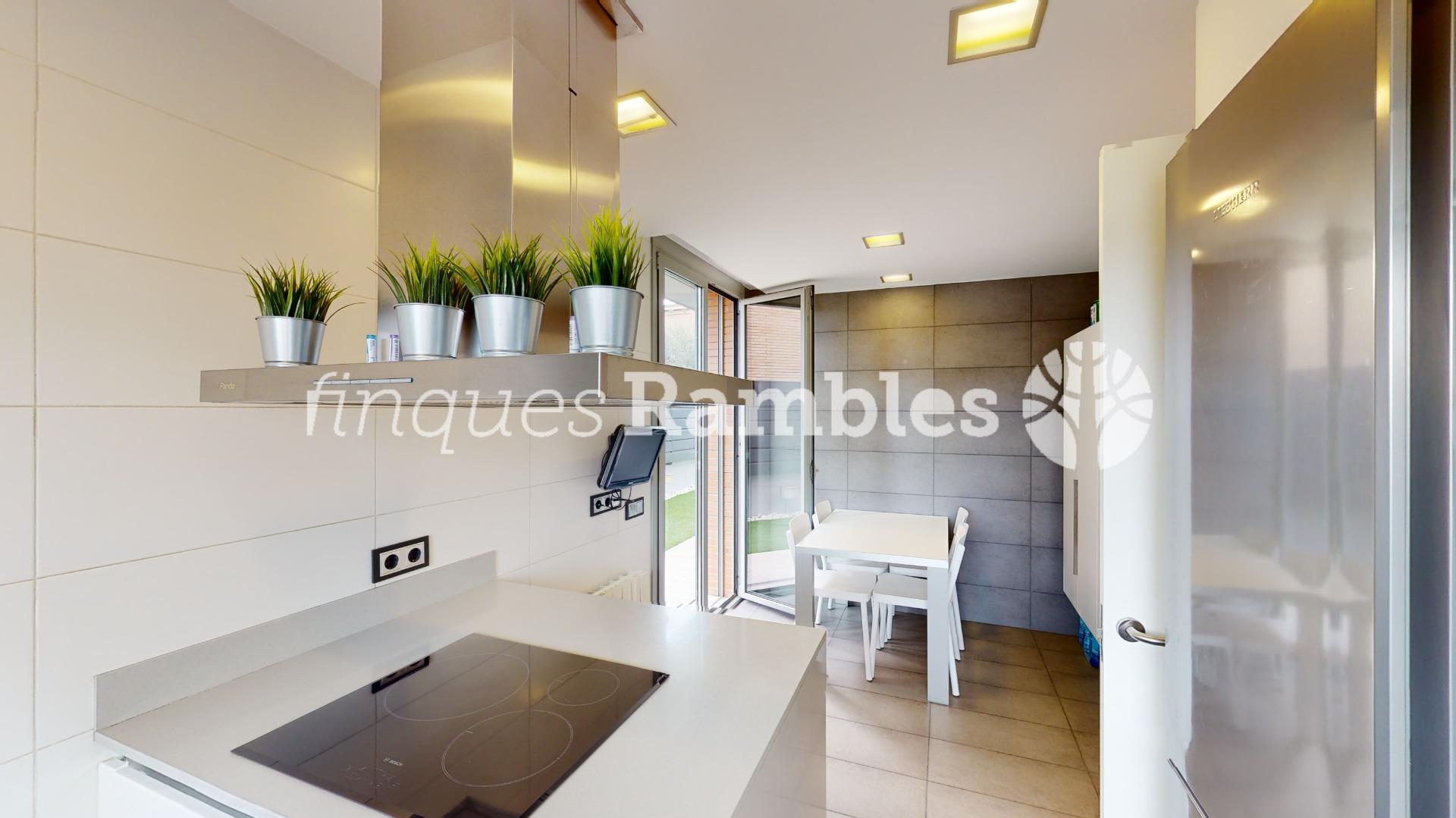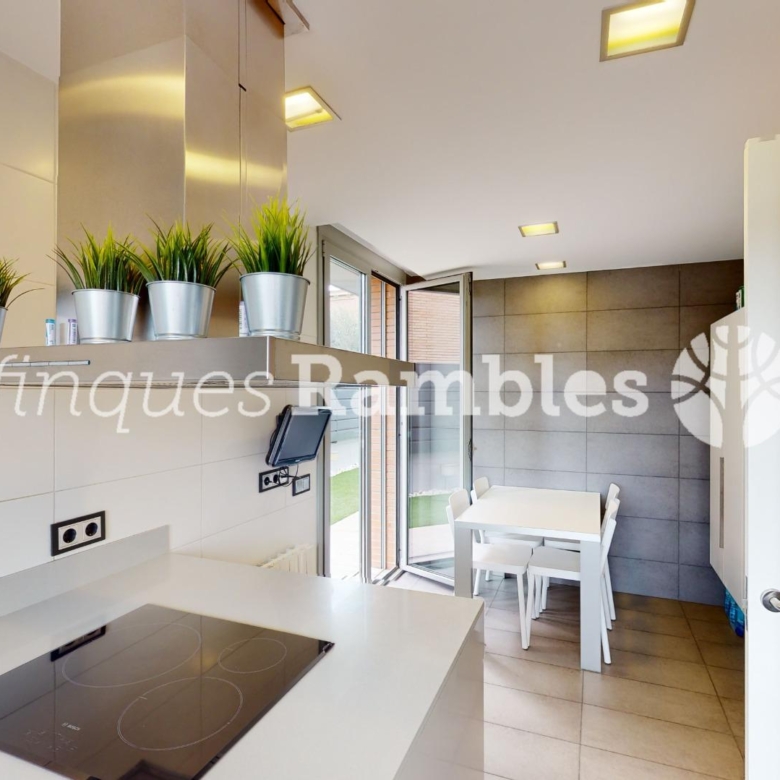 A la planta baixa, trobem una magnífica entrada enfustada de disseny, cuina amb illa i sortida al jardí i un magnífic menjador per passar estones amb la família i amics amb sortida directa al jardí. A més, trobem un bany de cortesia i un safareig.