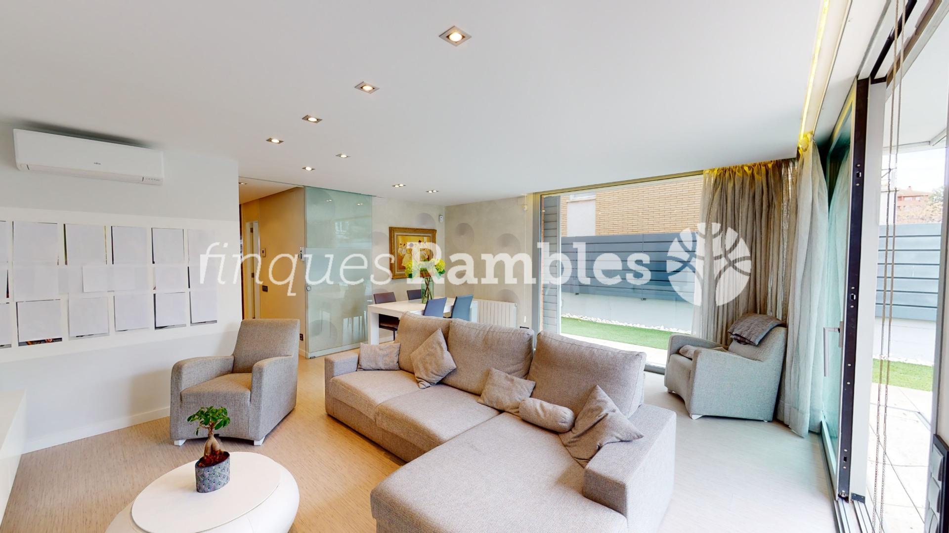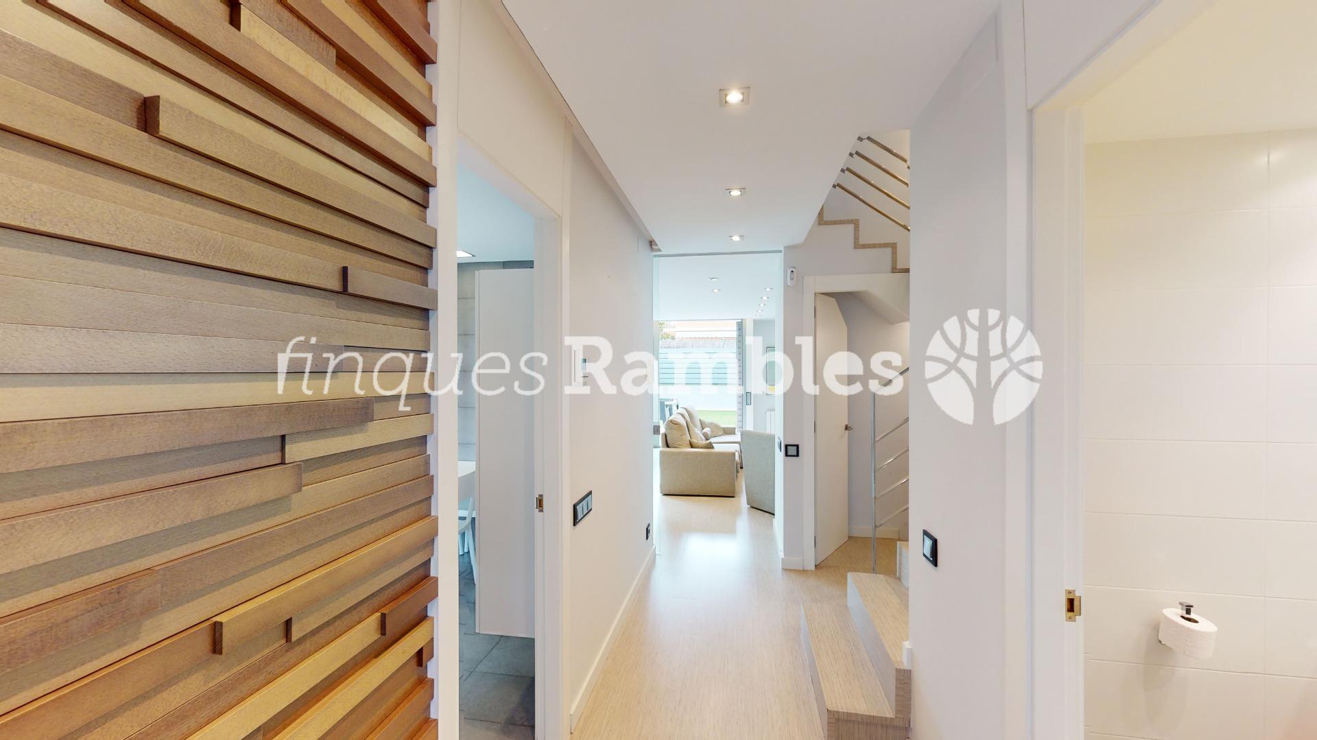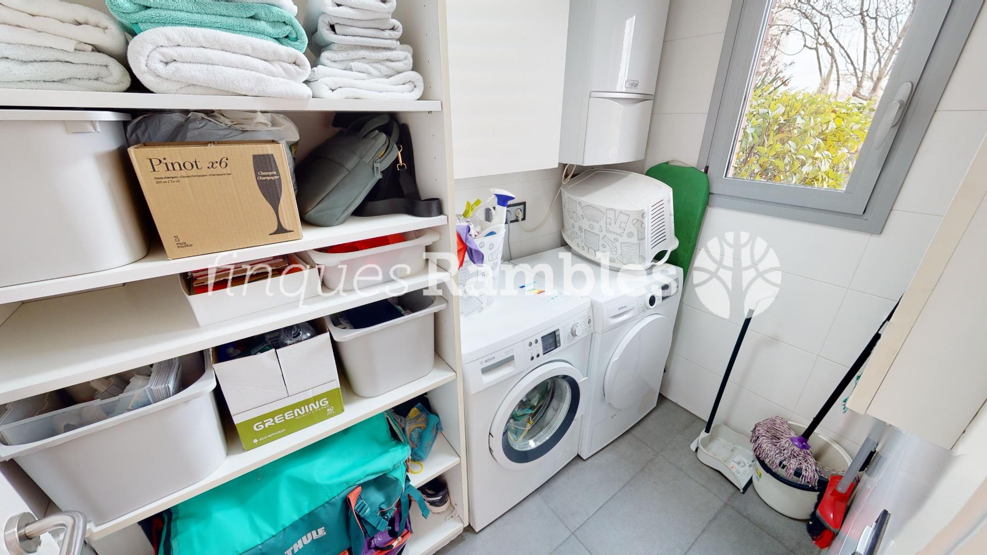 A la planta baixa, trobem una magnífica entrada enfustada de disseny, cuina amb illa i sortida al jardí i un magnífic menjador per passar estones amb la família i amics amb sortida directa al jardí. A més, trobem un bany de cortesia i un safareig.