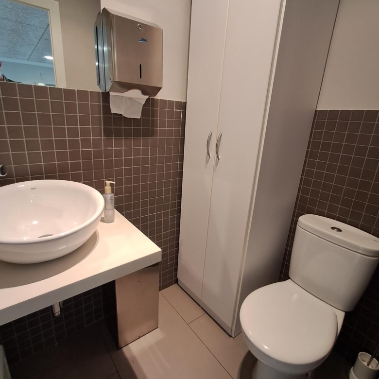 Baño completo y pequeño trastero para almacenaje.