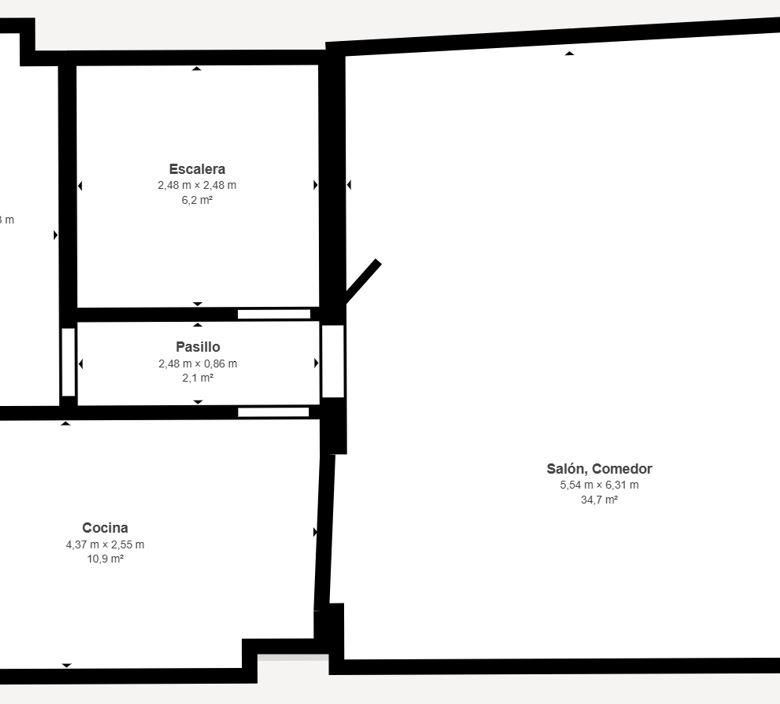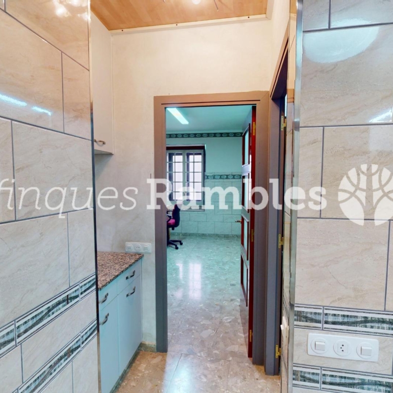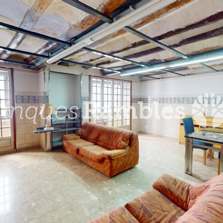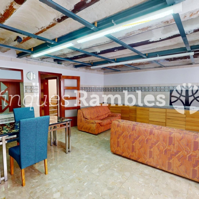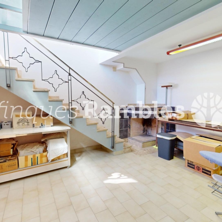 Si puges uns esglaons més, trobaràs una sala diàfana amb llar de foc que podràs deixar-la com està o fer-te les habitacions que et calguin perquè la dimensió és considerable: 73 m² de sala.