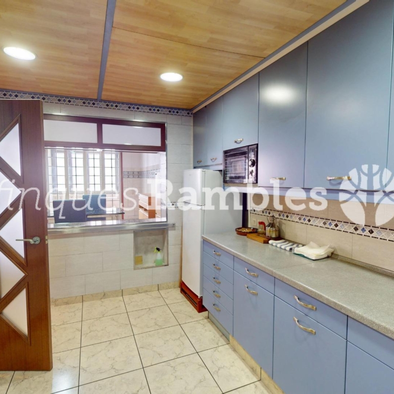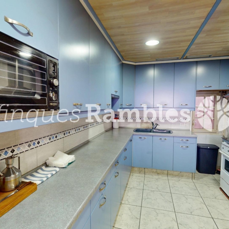 A la segona planta, tindràs una sala-menjador de grans dimensions, amb una cuina independent però unida amb passa-plats. El bany complet el tens en aquesta mateixa planta.