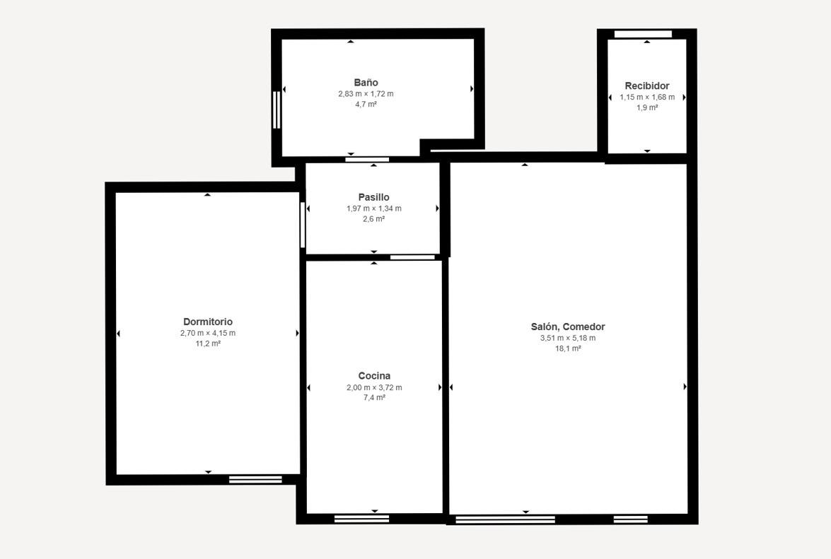 Mida de la propietat 51.55 m2 útils